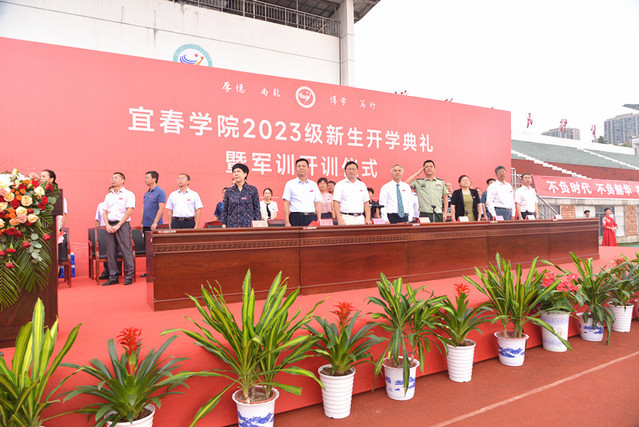 大会在庄严的国歌声中拉开帷幕。校党委书记、校长曾晓春宣布启动开学典礼暨军训开训仪式。