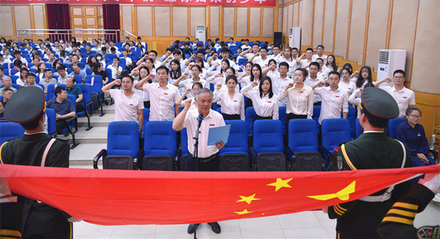 曾晓春带领新进教师面对国旗宣誓