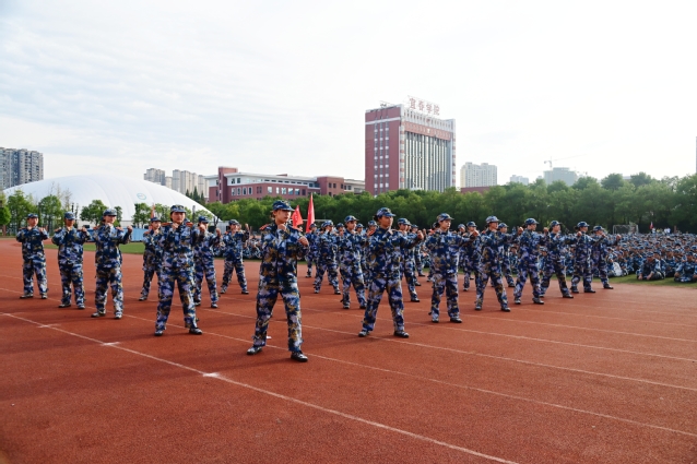 军训汇报表演在雄壮的国歌声中拉开序幕。各教学院的军训方队先后接受校领导检阅,同学们挺拔的军姿、整齐的步伐、嘹亮的口号赢得了在场师生的阵阵掌声;音乐舞蹈学院新生代表进行了军体拳表演;物理科学与工程技术学院、体育学院、音乐舞蹈学院新生代表进行了队列展示。
