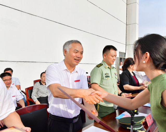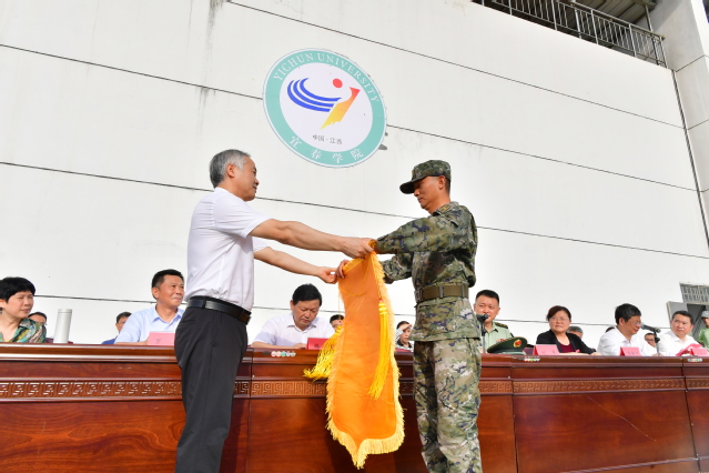 校党委书记、校长曾晓春向武警宜春支队赠送锦旗,校党委委员、副校长余新卫宣读了2023级本科新生军训工作的表彰名单。随后,校领导和部队领导为受表彰的集体和个人颁奖。