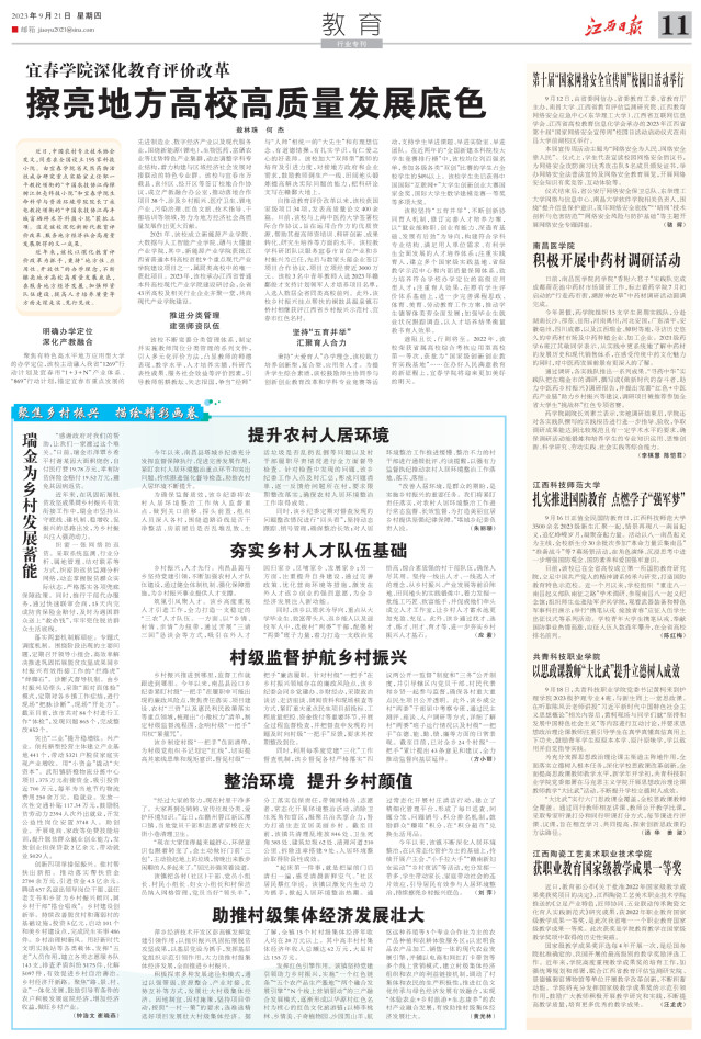 本站讯(记者 袁璐)9月21日,《江西日报》在教育版头版刊发《beat365官方网站深化教育评价改革 擦亮地方高校高质量发展底色》。文章从“明确办学定位 深化产教融合”“推进分类管理 建强师资队伍”“坚持‘五育并举’汇聚育人合力”三个方面,对beat365官网深化教育评价改革、彰显地方高校办学特色的举措与成效进行了报道。