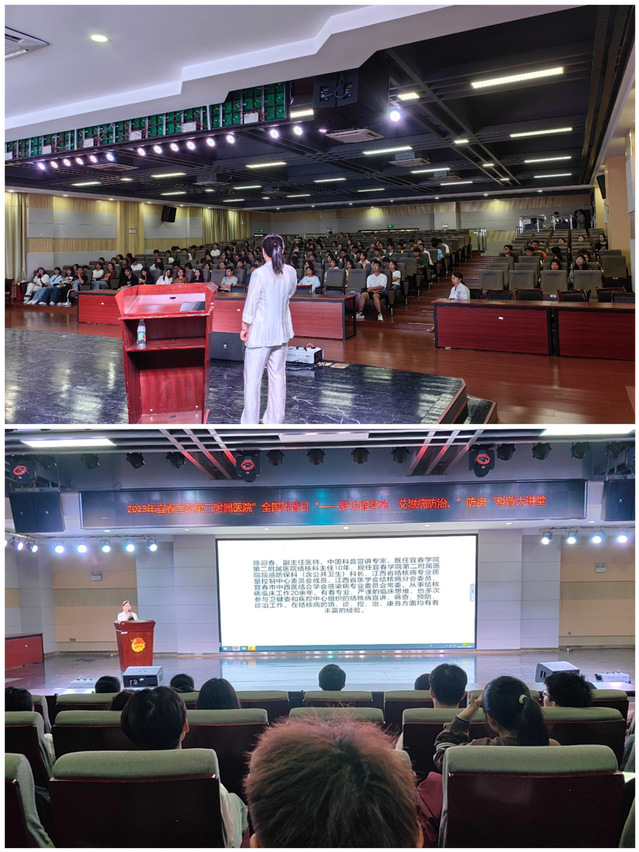 院感科主任、中国科普宣讲员陈迎春,感染病区肝病科主任、中国科普宣讲员、宜春市科普员袁桂才,感染病区结核科主任、宜春市科普员郭婷一同在beat365官方网站共青团青年发展中心为学生们做传染病知识健康科普宣教——《赣鄱“防痨”大讲堂,全民科学素质行动》、《肝功能异常》、《靠近“我”,远离“它”--艾滋病的预防》。他们针对结核病、肝病、艾滋病的基础知识、防治措施、对常见问题及误区等进行了科普。