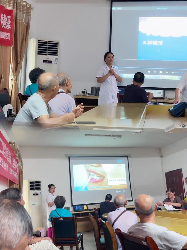 口腔科的黄医师和谢医师分别对他们科普口腔的维护及在日常生活中养成爱牙护牙的良好习惯和牙齿缺失后如何修复的相关知识。