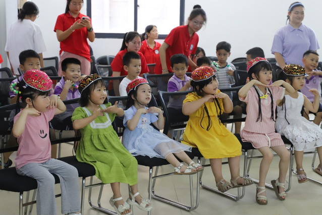 支教小课堂上,实践团成员们发挥自身专业特色带领孩子们一起发现美、欣赏美、创造美。手工课上,孩子们通过一步一步地揉、捏、搓、贴等动作把五颜六色的粘土塑造成型,在各种造型的卡通石膏上进行自己创意的发挥;音乐课上,实践团融红色文化、民族乐器、音乐知识于一体,带领孩子们走进奇妙的音乐之旅,认识并聆听各民族乐器的独特音色;舞蹈课上,孩子们载歌载舞,颇具维吾尔族特色的经典手势学的惟妙惟肖;英语启蒙课上,从每一个单词的发音开始跟读,一帧帧画面,一个个音符,小朋友们在新世界里不停探索。