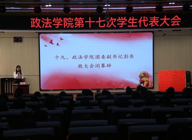 会议最后,政法学院团委副书记彭东致大会闭幕词,全体起立奏唱《国际歌》,大会胜利闭幕。