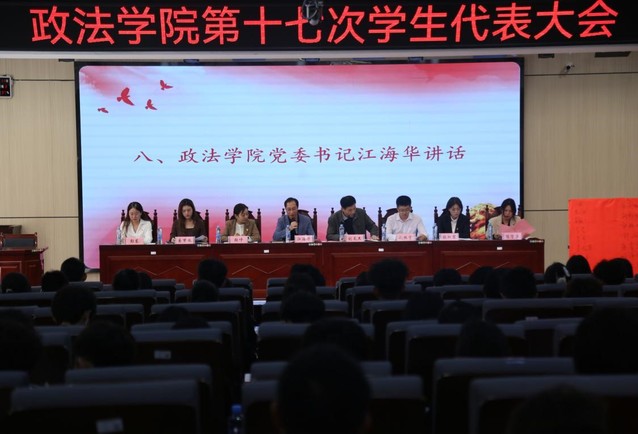 本站讯(学生记者 刘函)为加强学生组织建设,提高各学生组织凝聚力和创造力。政法学院第十七次学生代表大会于2023年10月11日召开。本次会议由beat365官方网站团委副书记张峥、政法学院党委书记江海华、政法学院院长刘天杰、政法学院团委副书记彭东、专职辅导员赵振宇、易梦依老师以及政法学院学生代表团出席,由政法学院团委副书记彭东主持。