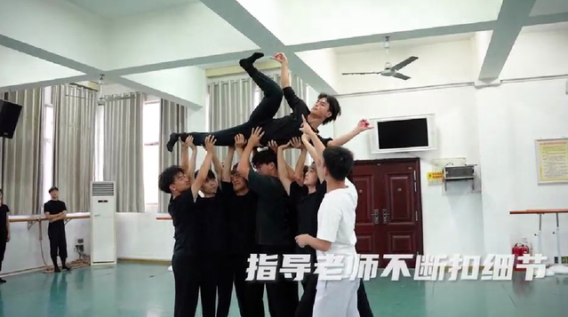 学习傩舞,挖掘其古老的文化内涵,无论对于该次节目的负责老师彭崇还是表演的学生都面临着挑战。“我们是第一次接触傩舞,万载傩舞元素非常少,学生们还要戴着木头制作的面具去跳,视线受阻,学习时气温很高,表演的服装又十分厚,因此这个过程非常的辛苦。传统傩舞一般都是在街头巷口表演,需要我们在继承传统的基础上进行探索性的加工与改造,将它转化为符合大众审美的舞台文化,在此过程中,学生们需要反复磨合。”分享创作和排练过程时,彭崇的双手不断变换着傩舞的手势。