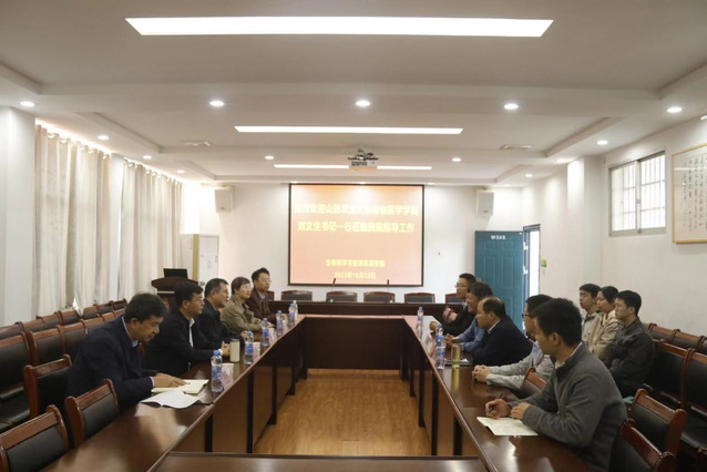 本站讯(学生通讯员 钟晓炜 林浪桃)为进一步深化生命科学与资源环境学院教育教学改革,提高生命科学与资源环境学院的办学教学能力。10月22日上午,山西农业大学动物医学学院刘文生书记、毛晓霞副书记、牛斌副院长、孙子龙副院长、学生实习实训主任吴国清等一行5人莅临生命科学与资源环境学院指导工作,生命科学与资源环境学院党委副书记、院长丁永电,副院长郭冬生、院务委员李鹏成和相关教师出席此次会议。
