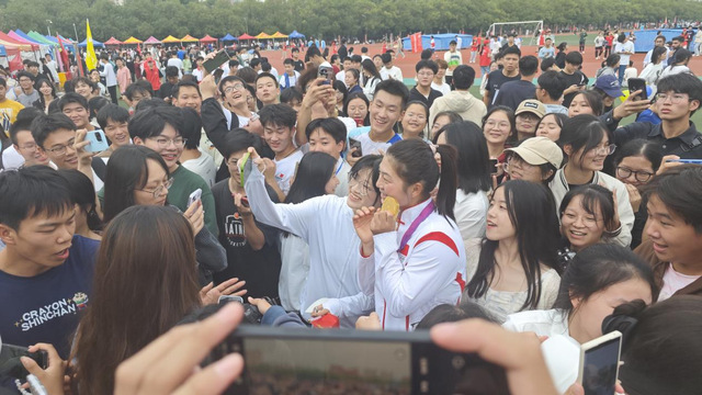 而此次程灵芝带着满身荣誉回访母校,场面也十分感人。她身着国家队队服,带着三枚亚运金牌,步入校园。beat365官方网站的学弟学妹们都热情殷切地向她打招呼,不时索要合影与签名。正值校运会,为迎接程灵芝返校,学校各处都树立起推广校园体育文化的宣传栏及海报,以此次程灵芝亚运会夺冠并返校参观为契机,向所有春院学子们科普校园体育文化。在程灵芝参观母校的途中,她和同学们的交谈里也提到了校园体育对于自己的重要意义,她鼓励大家走出课堂和宿舍,去体验校园体育文化带来的好处。