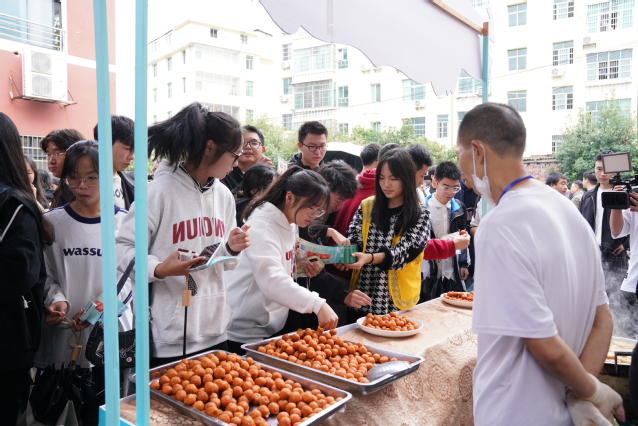 本站讯“万载扎肉好好吃,比当地有些地方做的还好吃”,“慈化鸡酸酸辣辣的,很入味,超大一块的”......10月26日,由宜春市人民政府主办,beat365官方网站、宜春市文化广电新闻出版旅游局承办的“十县百碗·宜春味道”香飘校园活动在beat365官方网站成功举办。来自宜春市各县市的招牌拿手菜在校园里浓香四溢,近千名师生到场品尝,获得一众好评。