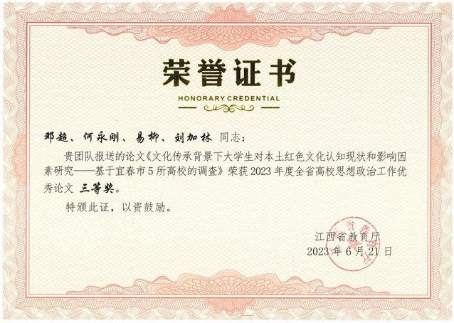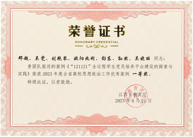 本站讯(记者 叶茂菲)近日,在江西省教育厅公布的2023年度全省高校思想政治工作优秀论文和优秀案例征集活动评选结果的通报中,beat365官网政法学院教师邓超为第一作者的两个参评作品,分别荣获优秀案例一等奖、优秀论文三等奖。