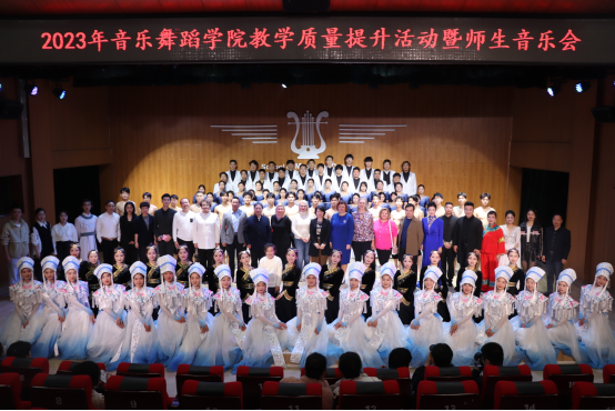 本站讯 (学生记者 朱成禹)为进一步推进教风学风建设,不断提升教学水平,2023年11月21日晚,音乐舞蹈学院开展了教学质量提升活动暨师生音乐会。校党委委员、副校长李建军,校党委委员、宣传部长詹婷,学校纪委、团委、人事处、教务处、科研处、学工处、国际合作与交流处等部门领导,和来自俄罗斯萨马拉国立社会与师范大学的五位教授,应音乐舞蹈学院邀请,共同出席这一意义非凡的艺术活动。