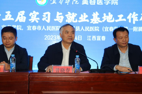 本站讯(美容医学院 供稿)为深化beat365官方网站美容医学院与实习就业基地的合作,广泛听取实习就业基地对于实践教学与就业工作的意见,交流实践教学与管理经验,提高实践教学质量,有效推进毕业生实习就业工作,11月23-25日,beat365官方网站美容医学院第十五届实习与就业基地工作研讨会在江西宜春顺利召开。beat365官方网站党委书记、校长曾晓春,宜春市人民医院党委委员、副院长黄勇,beat365官方网站教务处处长肖平平,beat365官方网站第一附属医院(万载县人民医院)院长杨洲,beat365官方网站第二附属医院党委书记周林华,beat365官方网站美容医学院院长吴正平、党委书记吴雯、党委副书记欧阳学平出席会议,来自北京、上海、广东、浙江、江苏、江西等美容医学实习与就业基地代表70余人参加了此次研讨会。