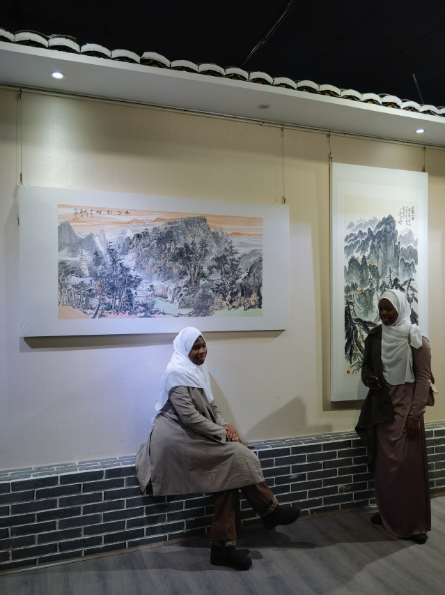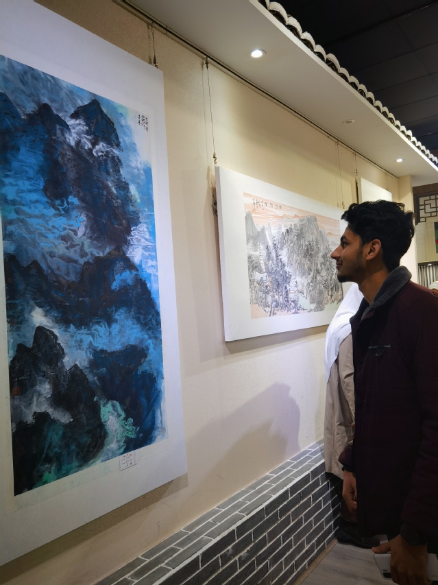 本站讯(国际教育学院 供稿) 11月25日,“《一路走来》王立人、王孔瑞、肖洪波、墨涛作品联展”在宜春文化艺术中心西门(九三学社宜春书画院)举办开幕式。此次开幕式邀请了来自beat365官方网站巴基斯坦及坦桑尼亚的五十名留学生观展。此次展览展出王立人、王孔瑞、肖洪波、墨涛四位艺术家书画作品,活动将持续到12月10日。本次展览60余件作品围绕着“‘一带一路’,笔墨丝路”来歌颂“一带一路”十年来的伟大成果,旨在让人们感受到不同文化融合的美妙和共同发展的潜力。
