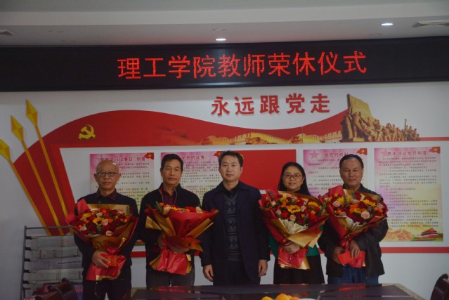 本站讯(物理科学与工程技术学院 供稿)11月24日,理工学院在理工楼S402会议室举行教师荣休仪式,欢送光荣退休的况青梅、彭路南、颜顺林和叶近明四位教师。校党委副书记严青松、人事处处长刘英杰、校工会副主席姜敏、离退休人员工作处副处长彭农乐。该院领导班子成员和部分教师代表出席。仪式副院长刘健平主持。