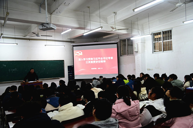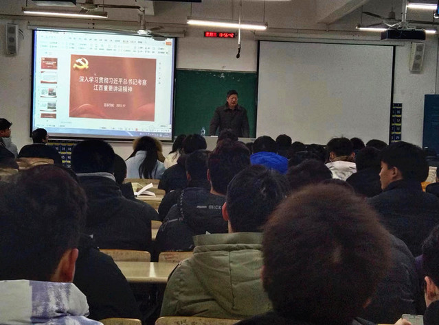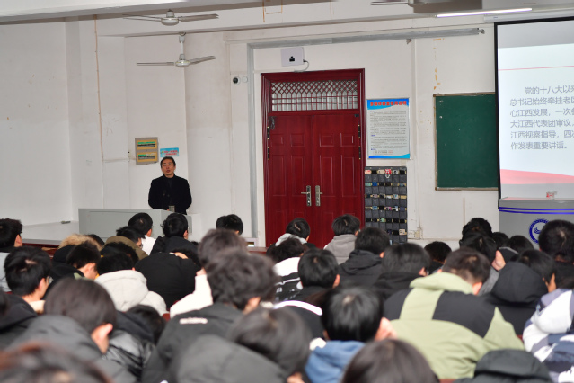 课堂上,授课教师从“深刻把握习近平总书记再次考察江西的重大意义”“深刻把握习近平总书记对江西发展提出的新的战略定位”“深刻把握习近平总书记对江西发展提出的任务要求”“聚焦把握原则和任务下的时代担当”四个方面深刻解读了习近平总书记考察江西重要讲话精神,勉励同学们,立大志、明大德、成大才、担大任,珍惜大好年华,立好人生标杆,放飞心中梦想,努力为全面建设社会主义现代化国家、实现中华民族伟大复兴的中国梦贡献智慧和力量。
