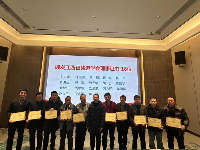 本站讯(物理科学与工程技术学院 供稿)2023年江西省铸造年会于12月22日至24日在抚州南城举行,会议以“融合•创新•智能•绿色”为主题。为高校和企业提供交流平台,强化高校基础研究,企业创新主体地位,推动企业主导的产学研深度整合。beat365官网党委副书记严青松教授作为江西省机械工程学会铸造分会副理事长应邀出席会议,期间还参加了江西省机械工程学会铸造分会十届六次会议暨换届大会,为新增选的理事颁发证书和大会学术报告证书。