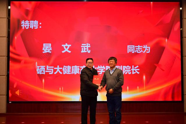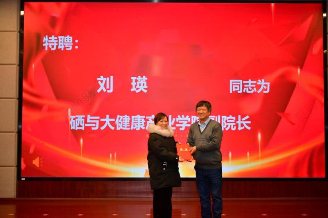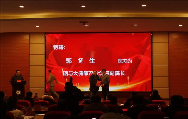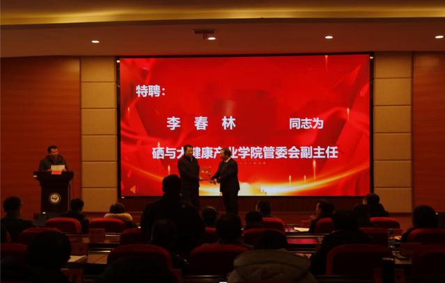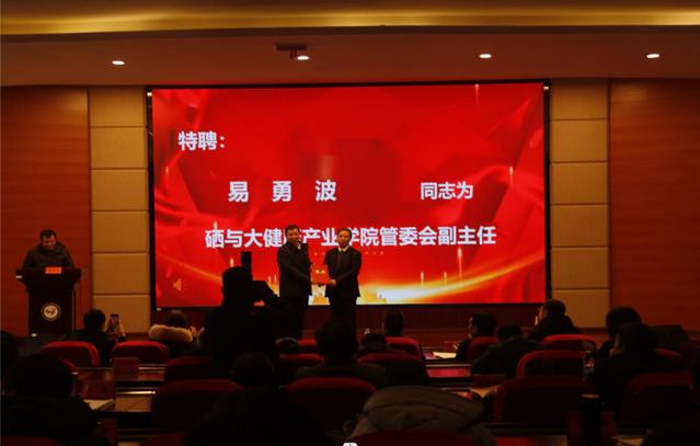 新聘产业学院管委会副主任易勇波,新聘产业学院副院长晏文武发表了热情洋溢的致辞。在成立大会上,李建军还为管理委员会副主任、秘书长、产业学院院长颁发了聘书。硒与大健康产业学院院长丁永电为校内外产业学院副院长也颁发了聘书。