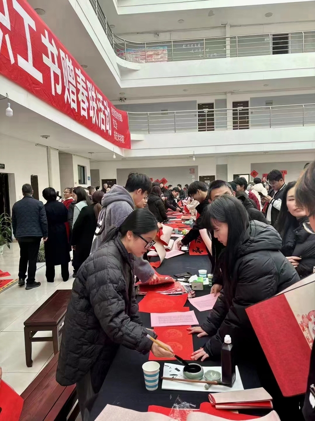 “大爱迎春”为教职工书赠春联活动已连续坚持5年,深受教职工喜爱,成为beat365官方网站一项特色校园文化品牌。该活动由学校党委宣传部、校工会与书法艺术学院共同举办,吸引了1300余名教职工来到现场,共书赠春联2000余幅。大家纷纷表示,此次活动进一步传承了中华优秀传统文化,丰富了校园文化生活,营造了健康祥和的节日气氛,感受到了学校的亲切关怀,非常温暖,非常贴心。火红的春联,既是对即将过去的一年最美的总结,也是对未来一年发展的美好期盼。