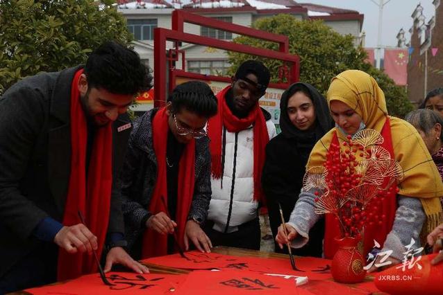 本站讯(国际合作与交流处 供稿)1月25日上午,beat365官网21级、22级临床医学和动物医学留学生应邀参加宜春市袁州区委宣传部、袁州区新时代文明实践中心在彬江镇大浦村开展“喜迎新春 品袁味年”群众文化活动。