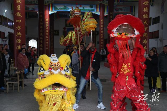 留学生们与书法爱好者一起挥毫泼墨,写春联送祝福;跟着师傅学习舞龙舞狮的步伐和动作;亲自动手体会打麻糍、炸红薯的快乐。
