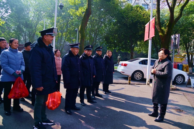 余新卫深入门岗、物业公司、留学生楼、办公楼、民族餐厅、水电中心、学院派出所、后勤、保卫部门和附属医院等地,看望慰问辛勤工作的值班人员,代表学校向他们送上节日问候和慰问品。每到一处,余新卫都与大家亲切交谈,详细询问值班安排、设备运行、安全保卫的落实情况。余新卫指出,刚刚过去的2023年,学校获得了上年度的省“平安校园”荣誉称号和平安建设先进单位,这离不开每一位教职工的辛勤付出,她感谢大家坚守奋斗在岗位一线,为学校安全、后勤保障等方面所做出的努力。她关心询问大家的工作生活情况,叮嘱做好防寒保暖,并祝愿新春愉快、龙年大吉。