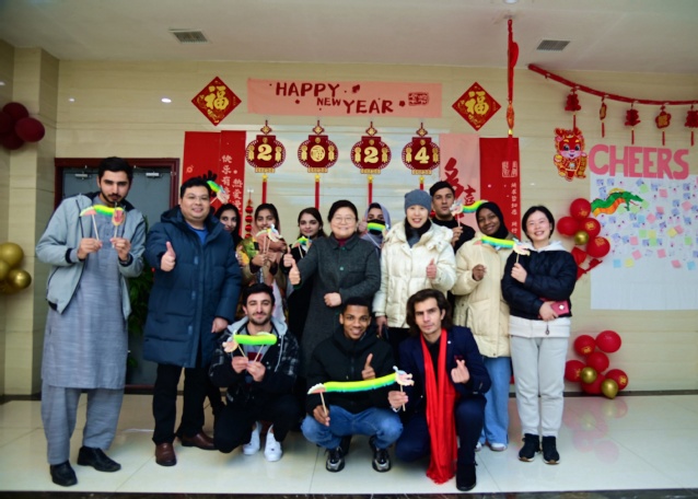 在国际交流中心,余新卫看望了在校留学生,热情与留学生们交流,一起舞动手工编制的“中国龙”庆祝中国传统佳节。余新卫关心了解他们春节期间的学习生活安排,祝愿同学们新年新气象,在中国度过一个欢乐而有意义的春节。