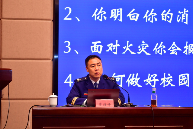 学习会上,廖海峰从“火灾事故案例”“消防安全责任”“消防安全管理”“火灾逃生自救”四个方面,深刻剖析了一个个真实案例,详细介绍了消防安全知识和应急处置方法,并提醒与会人员,学校宿舍、餐厅、实验室等是火灾隐患较多的地方,在日常管理中要积极贯彻“预防为主、防消结合”的方针,始终把消防安全预防做在前面,保障校园师生生命财产安全。