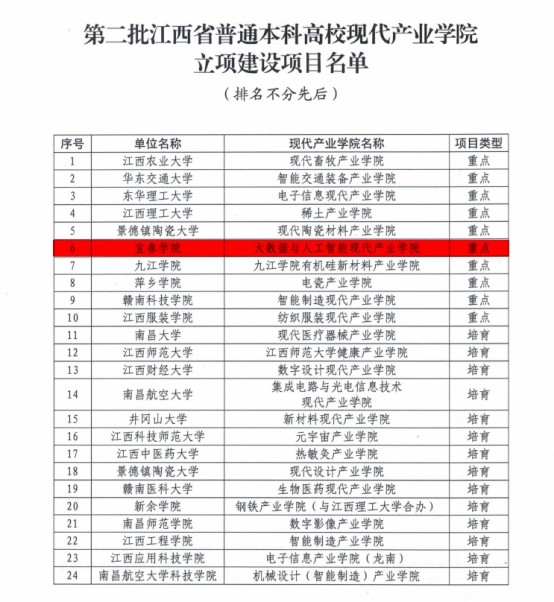 本站讯(教务处 供稿)近日,省教育厅、省发展和改革委员会、省工业和信息化厅联合下发《关于公布第二批江西省普通本科高校现代产业学院立项建设项目名单的通知》,beat365官网大数据与人工智能现代产业学院获批省级重点建设项目。这是继2022年新能源产业学院获批为首批省级现代产业学院重点建设项目后,beat365官网在现代产业学院建设中取得的又一大突破。目前,beat365官网省级现代产业学院重点建设项目数量在全省高校中位居前列。