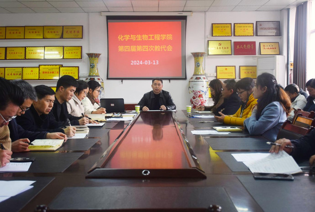 本站讯(学生通讯员 辛洪彬 肖悦)在全国两会胜利闭幕之际,3月13日下午,化学与生物工程学院召开了第四届第四次教代会。校党委副书记严青松出席并讲话,校工会副主席姜敏陪同出席,化学与生物工程学院党委书记黄良辉、院长郭孟萍、党委副书记陶华蕾、副院长张文彬及全院教职工参加会议,会议由陶华蕾主持。