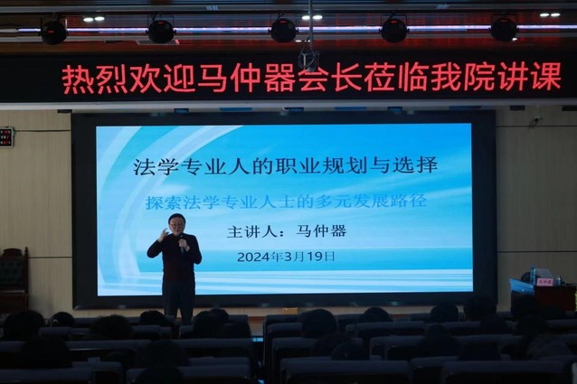 本站讯(学生通讯员 郑芷矜 余尹华)为了帮助同学们了解法学专业及其就业前景,使同学们了解到如何进行职业规划,并促进同学们探索法学专业人士的多元发展路径。2024年3月19日下午,政法学院法学专业人的职业规划与选择讲座在新模拟法庭进行开讲。讲座由上海振兴江西促进会第七届理事会会长马仲器主讲。政法学院23级法学一班、二班、三班、四班全体学生参加本次讲座。