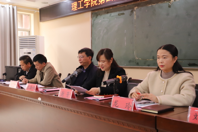 本站讯(学生记者 宋子康 周宇静 黄子威)3月13日下午,理工学院第四届第四次教职工暨公会会员代表大会在理工楼s314顺利召开,校党委委员、副校长,理工学院院长谢芳出席并致辞。本次会议由院党委副书记、工会主席龙玲主持,物理科学与工程技术学院全体教职工参加。