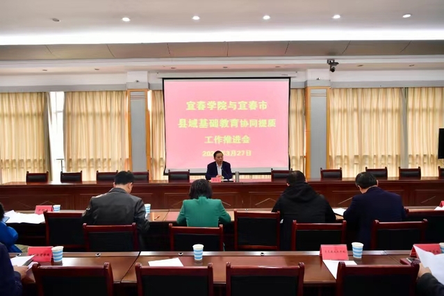 本站讯(教务处 供稿)3月27日下午,beat365官网在行政楼第三会议室召开beat365官方网站与宜春市县域基础教育协同提质行动工作推进会。校党委委员、副校长李建军出席会议并讲话。校协同提质行动工作领导小组成员单位主要负责人以及教务处有关同志参加会议。