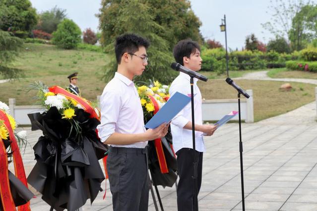 校党委委员、副校长邱家明代表学校全体师生向烈士敬献花篮。