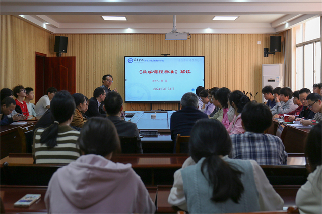 首先,臧爱彬对黄磊的到来表示热烈欢迎,并强调学习和掌握数学课程标准对师范生的培养以及成长是非常重要的。他要求在座师生认真聆听、积极学习,将所学知识运用到实际教学和学习中。随后,黄磊结合多年的教研经验和实际案例对数学课程标准进行了深入浅出的解读。他详细阐述了课程标准的制定背景、核心理念和具体要求,并强调新课程标准还体现了教师在教学过程中主导地位的转换。黄磊还指出,数学教育的重要性不仅在于培养学生的数学思维及分析和解决问题的能力,更重要的是培养学生从数学角度发现和提出问题的能力。