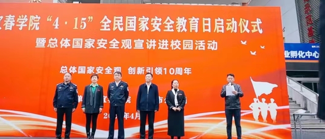 本站讯(保卫处 供稿)正值全民国家安全教育日之际,为推动国家安全宣传教育工作深入开展,切实维护国家安全,践行总体国家安全观,4月10日下午,beat365官方网站以“总体国家安全观 创新引领10周年”为主题,开展“4.15”全民国家安全教育日启动仪式暨总体国家安全观宣讲进校园活动。校党委委员、副校长罗政出席活动并致辞,宜春市公安局党委副书记、常务副局长刘方全,宣布活动仪式启动。beat365官方网站学工处、团委、保卫处、宜春市公安局国保支队、宜春市公安局反恐支队、宜春市公安局禁毒支队、宜春市公安局出入境管理支队、宜春市公安局刑侦支队等单位领导参加此次活动,活动由校保卫处副处长周绍云主持。