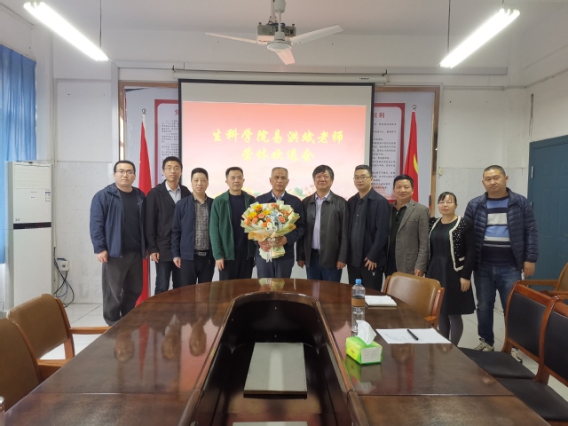 会议伊始,李春林介绍了易洪斌副教授的教学生涯、个人经历、所获得的奖项和荣誉等方面,并对易教授为教育事业的拼搏奉献表示感谢和最真挚地祝福。随后,在场教师纷纷表达与易教授共事多年的深厚情谊,对易教授敬业勤廉、无私奉献、踏实能干的为人品质十分钦佩,并表示真挚美好的热切祝福。最后,在老师们热烈的掌声和祝福声中,丁永电、陈路扬为易教授送上一束鲜花,代表着生命科学与资源环境学院向易教授数十年的教育工作表达衷心的感谢。易教授深情回顾了在校工作生涯的点点滴滴,分享了诸多感悟与心得,饱含了对教育事业的热爱、对师生的感激与不舍和对学校今后的发展的期盼与祝福。
