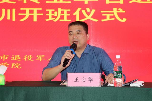 王安华在讲话中首先介绍了历年来举办转业军官进高校专项培训的基本情况以及本次培训在课程设置与内容、培训模式与方法、实践等方面的创新与优化,并就做好此次培训提出了三点要求:一是提高认识,用长远眼光看待转业军官进高校培训;二是行动起来,以饱满热情推动转业军官进高校培训落地生根;三是严于律己,永葆军人本色积极投身地方建设与发展。