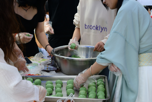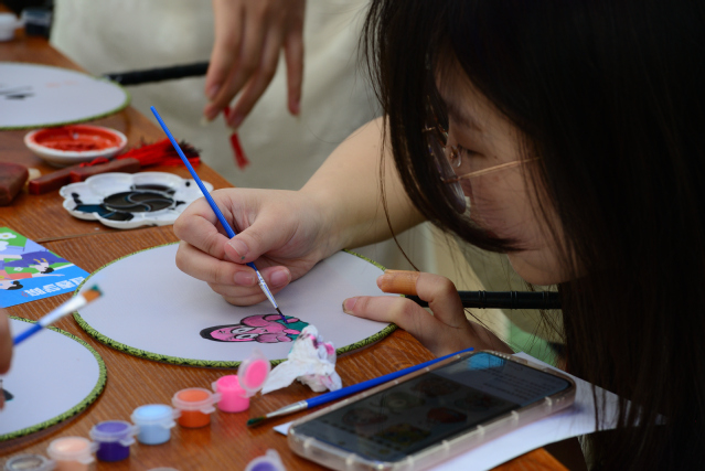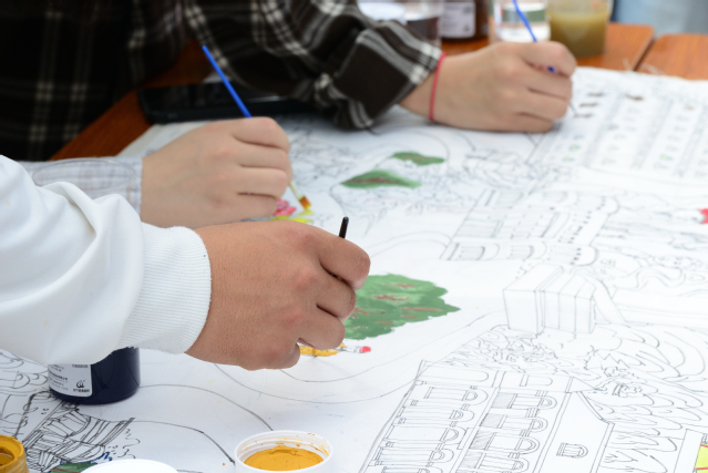 “五育体验区”以春日节气为主题分别设有植物拓染、书法、青团制作、走进中医等体验区,在植物拓染体验区,同学们在劳动中感受植物拓染的魅力;在中医体验区,大家通过“闻、识、尝、练”等方式详细讲解了麦冬、陈皮等常见中药材的种植和药用价值等;巨画共创过程中,同学们以“庆祝中华人民共和国成立75周年”为主题,共绘心中美好时代,献上对党和国家的深深祝福。