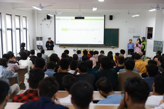 本次专题宣讲活动由市交警支队李警官主讲。他首先介绍了外国人获取中国驾照的条件及流程,接着为留学生普及了交通安全知识,着重对酒驾醉驾、超员加速、闯红灯、不按规定车道行驶和不佩戴头盔等交通违法行为的危害性进行了讲解,尤其强调了电动车骑行规则。在案例分析环节,李警官与留学生积极互动,密切交流,同时还指导如何正确佩戴头盔等出行必备用具。最后,李警官提醒在场留学生,生命是宝贵的,交通安全时时刻刻伴随着大家,看似老生常谈的交通知识,其实最需要大家牢记并严格遵守。