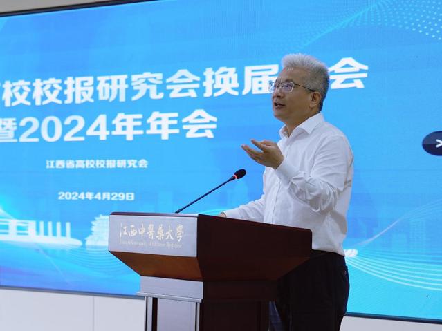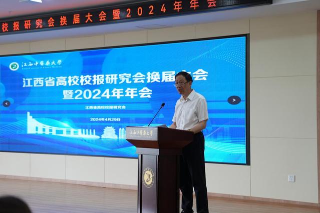 本站讯(校报研究会 供稿)4月29日,江西省高校校报研究会换届大会暨2024年年会在江西中医药大学召开。省委教育工委委员、省教育厅副厅长兼省高校校报研究会第七届常务理事会理事长汪立夏出席会议并讲话,向当选的新一届常务理事会全体成员表示祝贺,向为全省高校校报事业作出贡献的老报人表示感谢。他希望省高校校报研究会第八届常务理事会深入学习贯彻习近平新时代中国特色社会主义思想,不断开创全省高校校报工作新局面。