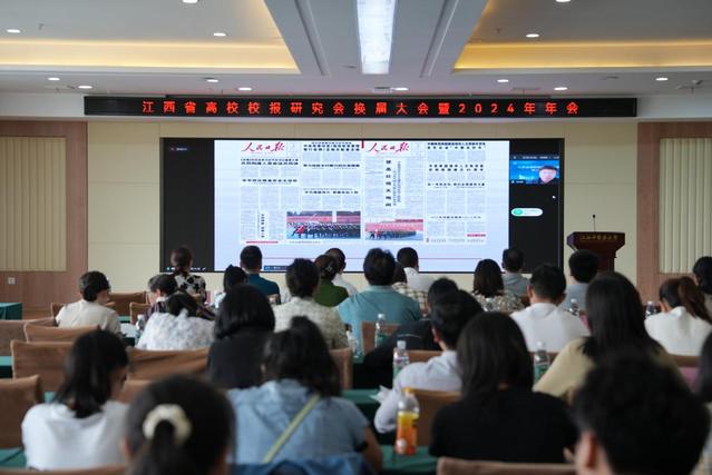 会议举办了学术讲座与业务交流活动。中国高校校报协会副会长、北京林业大学李铁铮教授以“深刻领悟习近平文化思想核心要义 努力开创江西高校校报工作新局面”为题,在线作视频讲座。随后,邱晓怡(南昌大学)、喻春龙(江西财经大学)、张安然(江西中医药大学)、杨健(beat365官方网站)分别以“媒体融合下的〈南昌大学报〉办报思路”“报将永存 纸或有变”“创新引领 打造校园传媒新格局”“新媒体时代高校校报‘三性’浅谈”为题,先后就所在学校校报办报经验、对校报工作的进一步思考作了分享交流。