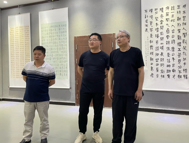 讲座结束后,刘帅和胡友根一同参观了书法艺术学院的《2023届争席毕业展》和书拓碑实训室。对学生的书法作品展大为赞叹,认为这些作品具有很高的艺术水准,体现了学生对书法艺术的深刻理解,展现了学生的精湛技艺。在拓碑实训室,参观了颇具地方特色的碑刻与墓志,见证了书法艺术的发展历程。