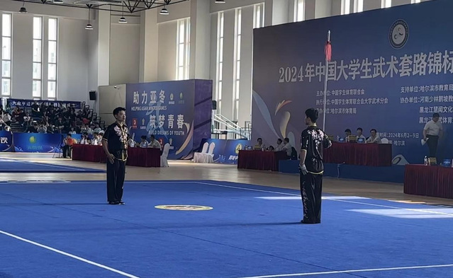 本站讯(学生记者 郭首秀)由中国学生体育联合会主办、中国学生体育联合会大学武术分会执行,哈尔滨市体育局承办、哈尔滨市教育局支持,河南少林鹅坡教育科技集团有限公司、黑龙江慧闻文化发展有限公司协办举行的2024年中国大学生武术套路锦标赛(甲组、乙组)于6月2日至6月9日在哈尔滨华德学院体育馆举行。本次大赛共有来自全国249所高校的1600多名武术爱好者和运动员报名参赛,是近年以来参赛人数最多的全国高校武术赛事。