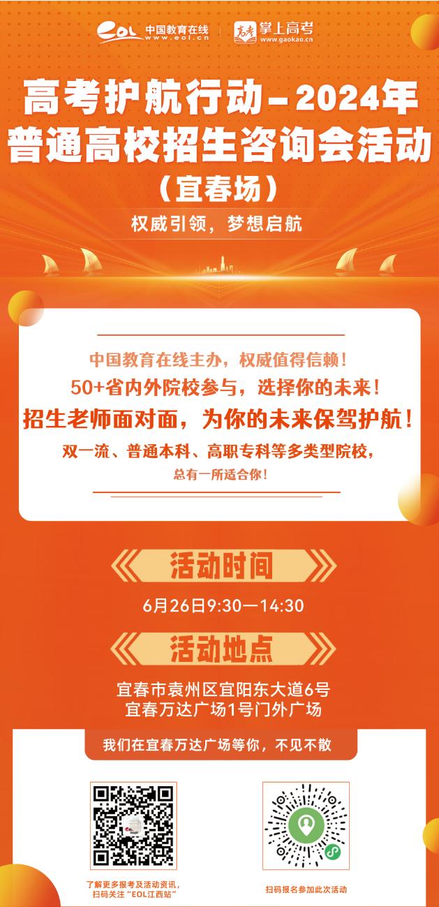 高考成绩即将出炉,为方便广大考生和家长能够更为便捷的了解我们学校的最新招生政策,beat365官网将参加6月26日在宜春万达广场举办的“2024年普通高校招生咨询会活动(宜春场)”公益活动。