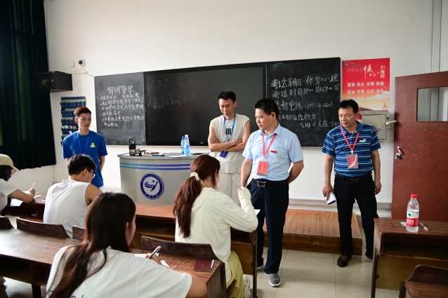 本站讯(记者 袁璐 实习记者 丁金艳)为加强期末考试的组织管理和考风建设,7月1日,校党委副书记、校长蔡海生,校党委委员、副校长李建军及教务处、各教学院考试工作领导小组成员深入考场、视频监考室进行巡考。