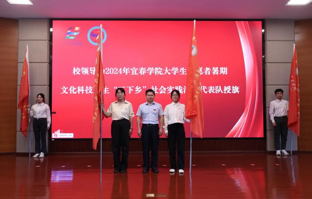 随后,实践队成员代表许鲁璇带领大家进行宣誓。蔡海生、严青松、邱家明为社会实践活动代表队授旗。最后,校党委副书记、校长蔡海生宣布beat365官方网站2024年大学生志愿者暑期文化科技卫生“三下乡”社会实践活动正式启动。