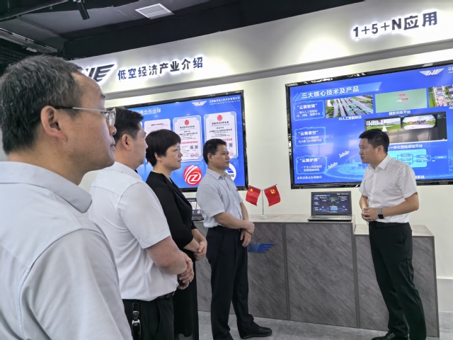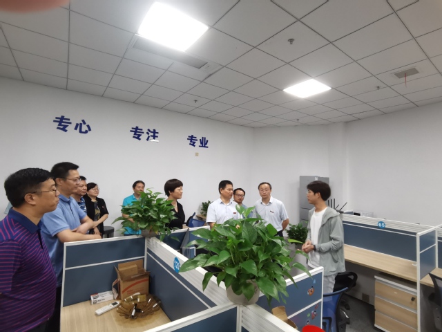 蔡海生一行首先来到大数据与人工智能现代产业学院教学场地,了解产业学院基地规划、政校行企合作、学生岗前实训、软件工厂运行和学生就业等情况。蔡校长对产业学院取得的成绩表示肯定,鼓励产业学院结合教学模式凝练省级教学成果奖。随后,蔡海生走访了大数据产业园云数据中心、江西航月无人机科技有限公司,了解企业发展历程、技术研发以及行业应用等情况,并就产教融合、科研成果转化等与企业进行深入交流。