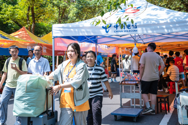 “三、二、一,OK!”在校门口,校融媒体中心志愿者正用相机为新生留影,新生和家长站在校门前,拍下“大学第一张照片”。为新生办理手续、解答疑惑、拍照……志愿者朱玉榕忙碌着。“看到学弟学妹们充满活力,我也受到感染,从心底感到开心。”全校近2000名的志愿者不畏骄阳、不惧艰辛,坚守在迎新的各个岗位,在学校迎新服务站、宿舍区、主要交通路口等设置多个服务点位,全程为新生及家长提供帮助与指引。搬运行李、答疑解惑,力求给予新生及家长们最及时、最细致、最全面的帮助与服务。志愿者们的热情指引和贴心提示,也在新生心中埋下了种子,发挥了朋辈的价值引领作用,使志愿奉献的精神在校园蔚然成风,在实践中深化大思政课的育人实效。以责任担当向家长展现“厚德、尚能、博学、笃行”校训精神,以自信姿态向社会各界展现沁湖青年勇担责任、志愿奉献的青春风貌。