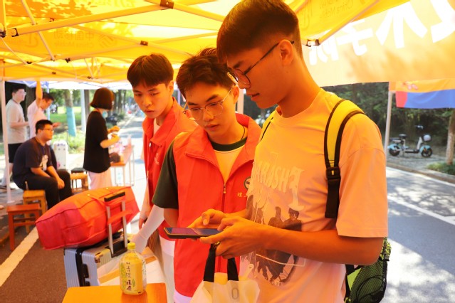 “三、二、一,OK!”在校门口,校融媒体中心志愿者正用相机为新生留影,新生和家长站在校门前,拍下“大学第一张照片”。为新生办理手续、解答疑惑、拍照……志愿者朱玉榕忙碌着。“看到学弟学妹们充满活力,我也受到感染,从心底感到开心。”全校近2000名的志愿者不畏骄阳、不惧艰辛,坚守在迎新的各个岗位,在学校迎新服务站、宿舍区、主要交通路口等设置多个服务点位,全程为新生及家长提供帮助与指引。搬运行李、答疑解惑,力求给予新生及家长们最及时、最细致、最全面的帮助与服务。志愿者们的热情指引和贴心提示,也在新生心中埋下了种子,发挥了朋辈的价值引领作用,使志愿奉献的精神在校园蔚然成风,在实践中深化大思政课的育人实效。以责任担当向家长展现“厚德、尚能、博学、笃行”校训精神,以自信姿态向社会各界展现沁湖青年勇担责任、志愿奉献的青春风貌。